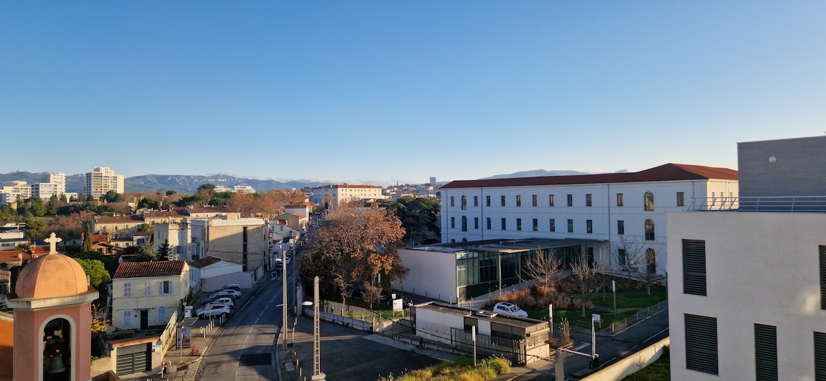 🌞 Bienvenue dans notre studio paisible avec vue imprenable sur le parc national des Calanques, idéal pour un séjour relaxant au cœur de Marseille ! 🌞 🚘 Parking gratuit et sécurisé en sous-sol pour stationner en toute tranquillité. 📍 Situation idéale : À 10 min à pied du métro M1 🚇 pour un accès facile au centre-ville. Bus n°6 au pied de l'immeuble vous emmenant en seulement 3 arrêts à la station de métro. 🌙 Réservez vite ce petit coin de paradis !!!