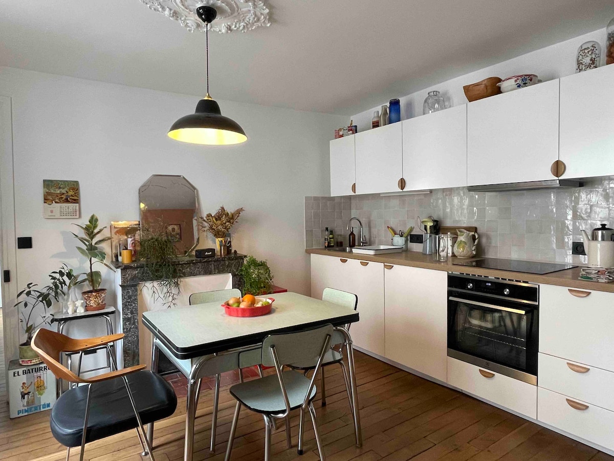 Spacious 100m² flat in Paris’s 5th arrondissement, with park views from the kitchen & master bedroom. The 5th’s historic—old streets, landmarks like Notre-Dame & the Pantheon a 10-min walk, & a lively local vibe with cafes & shops on Rue Monge. Near markets & metro. Bright & stylish, with a balcony off Rue Monge, chandelier dining room, & marble kitchen. 2 bedrooms: master with private bathroom, 2nd with balcony access. 4th floor. One A/C unit per room.