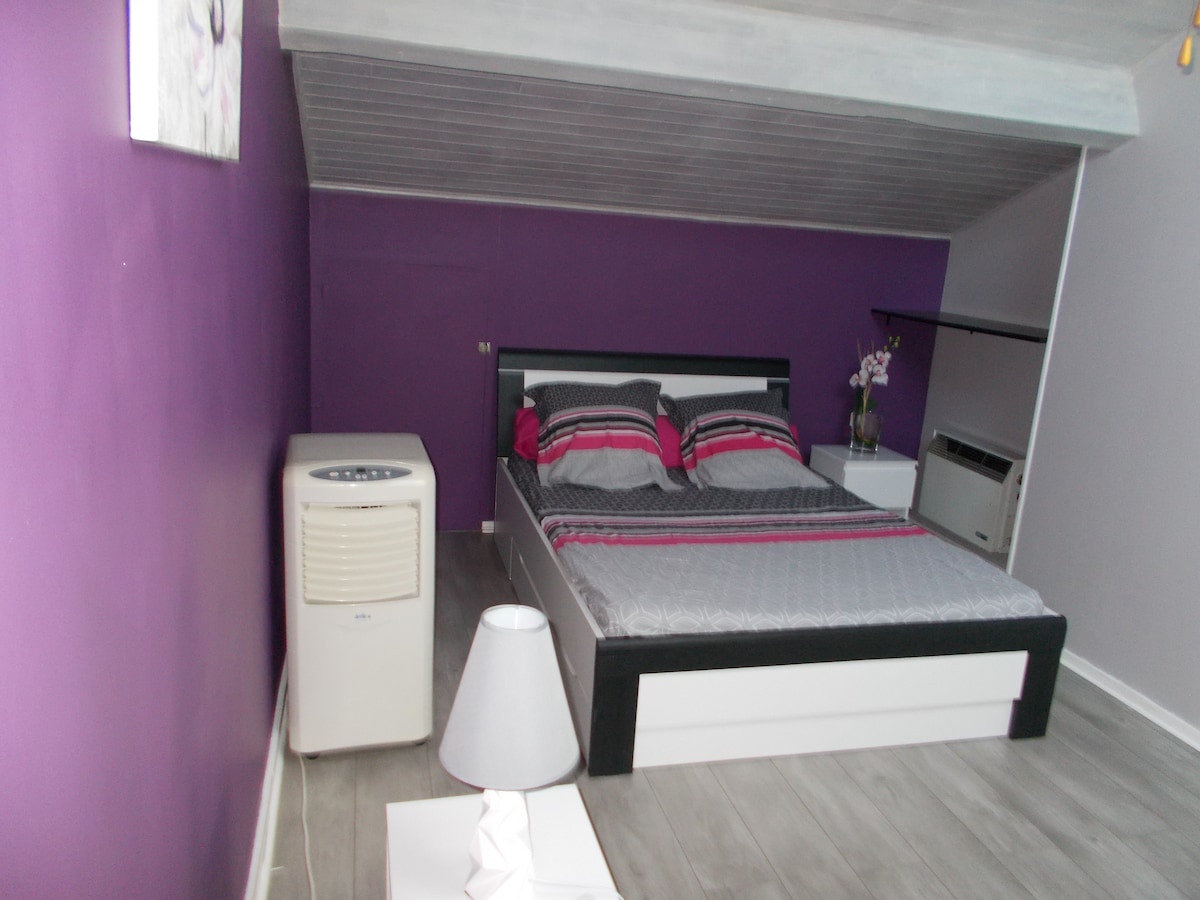 Chambre indépendante dans une maison de 2014, au grand calme au fond d'une impasse d'un village de 3500 habitants. Vous y croiserez notre Bouvier Bernois. Elle est adorable et ne cherchera que des caresses de votre part une fois qu'elle aura fait votre connaissance. Piscine. Petit déjeuner 5€/personne sur demande. Possibilité de louer la maison entière sur demande.