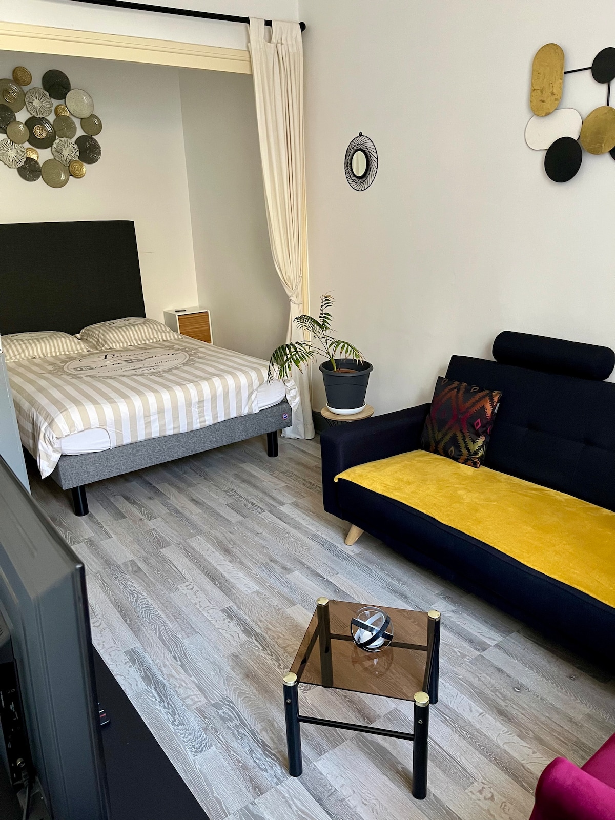 Our apartment is near the city center, and the Part Dieu train station. Situated in near les Halles Bocuse, there are many restaurants and shops around You'll appreciate your journey if you like design apartment, French gastronomy, and calm We are open to couples, solo, businessmen, family (children) The cleaning is included, it include bath towels, body wash and the bed done (pillow, couette)