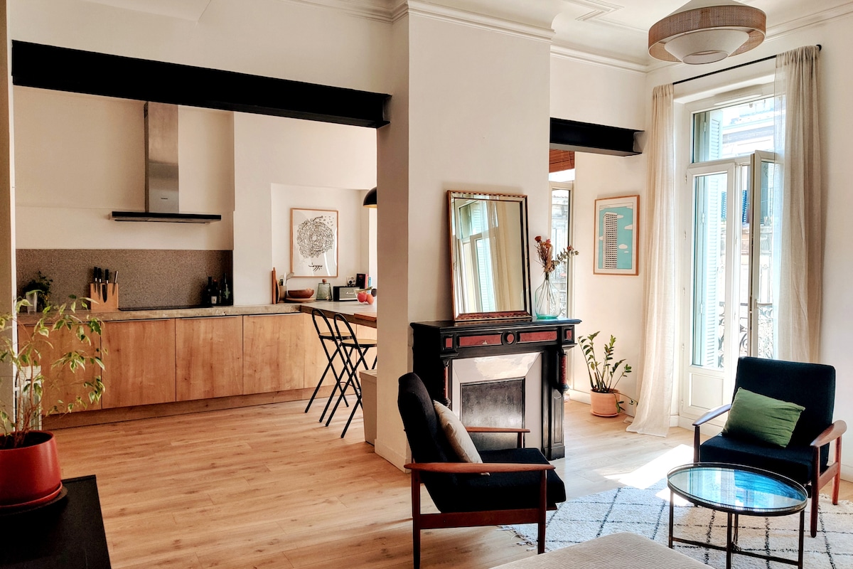 Ce logement est parfaitement situé entièrement refait à neuf et lumineux. Vous êtes à 15 min à pieds de la gare Saint Charles et du Vieux Port, Place Jean Jaurès est à moins de 100 mètres le Cours Julien à 5 min à 4 arrêts de Métro du Stade Vélodrome et des plages Bus,Métro et Tramway sont à 5 min à pieds Vous séjournez au 4ème étage d'un immeuble Marseillais avec des commerces de proximité. Vue dégagée sur la ville de Marseille et la mer depuis un spacieux balcon.
