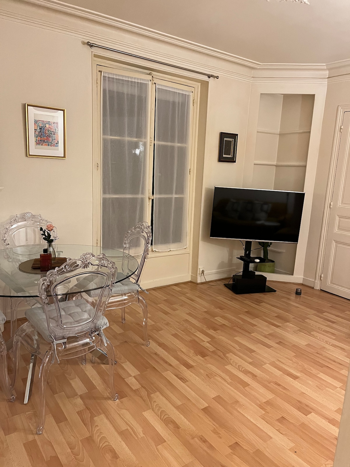 Joli appartement de 40m2 à Montparnasse vue tour EIFFEL Appart Luxe-Refait à neuf par un architecte soigné et central au coeur du quartier des artistes et théâtres parisiens. Proche gare Montparnasse et Denfert Rochereau. Très fonctionnel : Chambre à coucher avec un Grand Lit matelas neuf Et un beau séjour Wifi, ascenseur, salle de bain et toilettes indépendantes, TV, cuisine équipée, lave linge, linges fournis ...déposez vos valises & profitez de paris Parquet ancien, tableaux