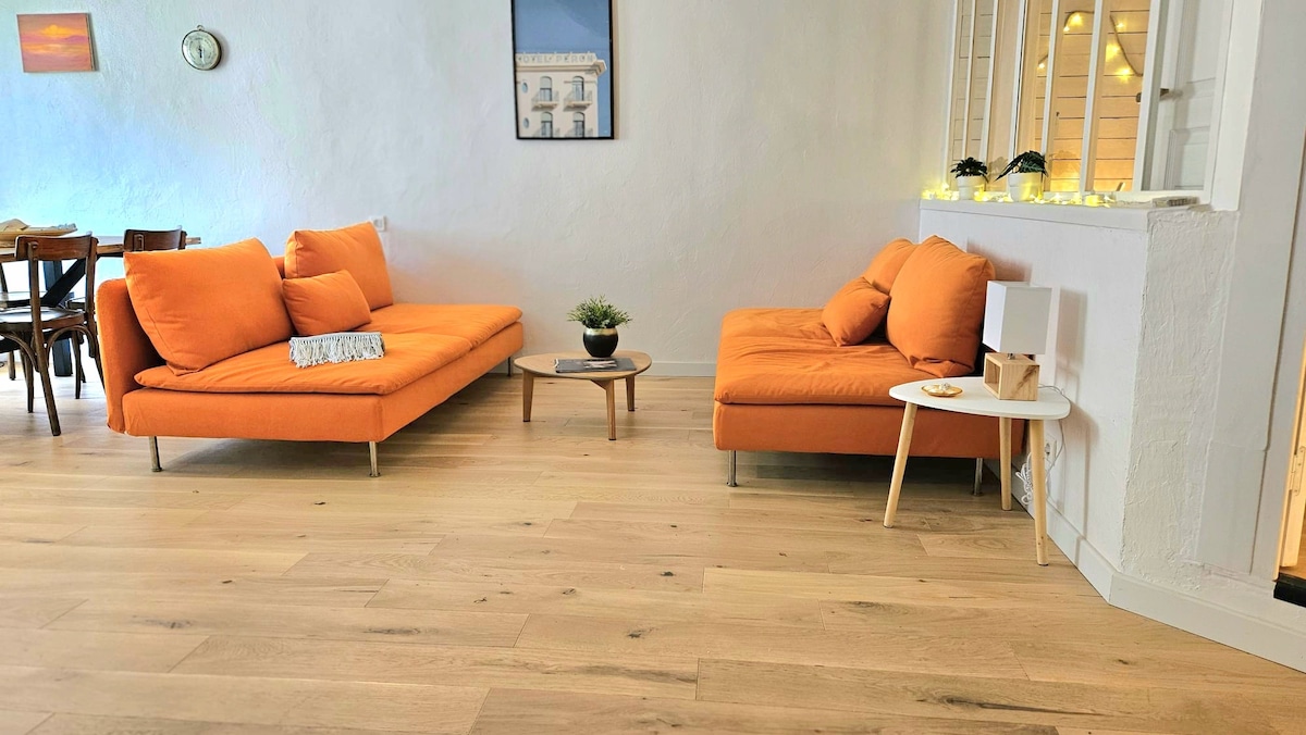 Découvrez ce T2 duplex de 35m² récemment rénové, meublé avec des produits de qualité, avec vue sur notre dame de la garde 🤩 Idéalement situé à 1 min à pied des métros, tram et bus, explorez Marseille rapidement. Chambre sous les toits avec velux, cuisine équipée incluant lave-linge, grande TV connectée et accès internet très haut débit par fibre. Situé dans un bâtiment résidentiel rénové et calme. Réservez dès maintenant pour un séjour confortable et pratique au cœur de Marseille.