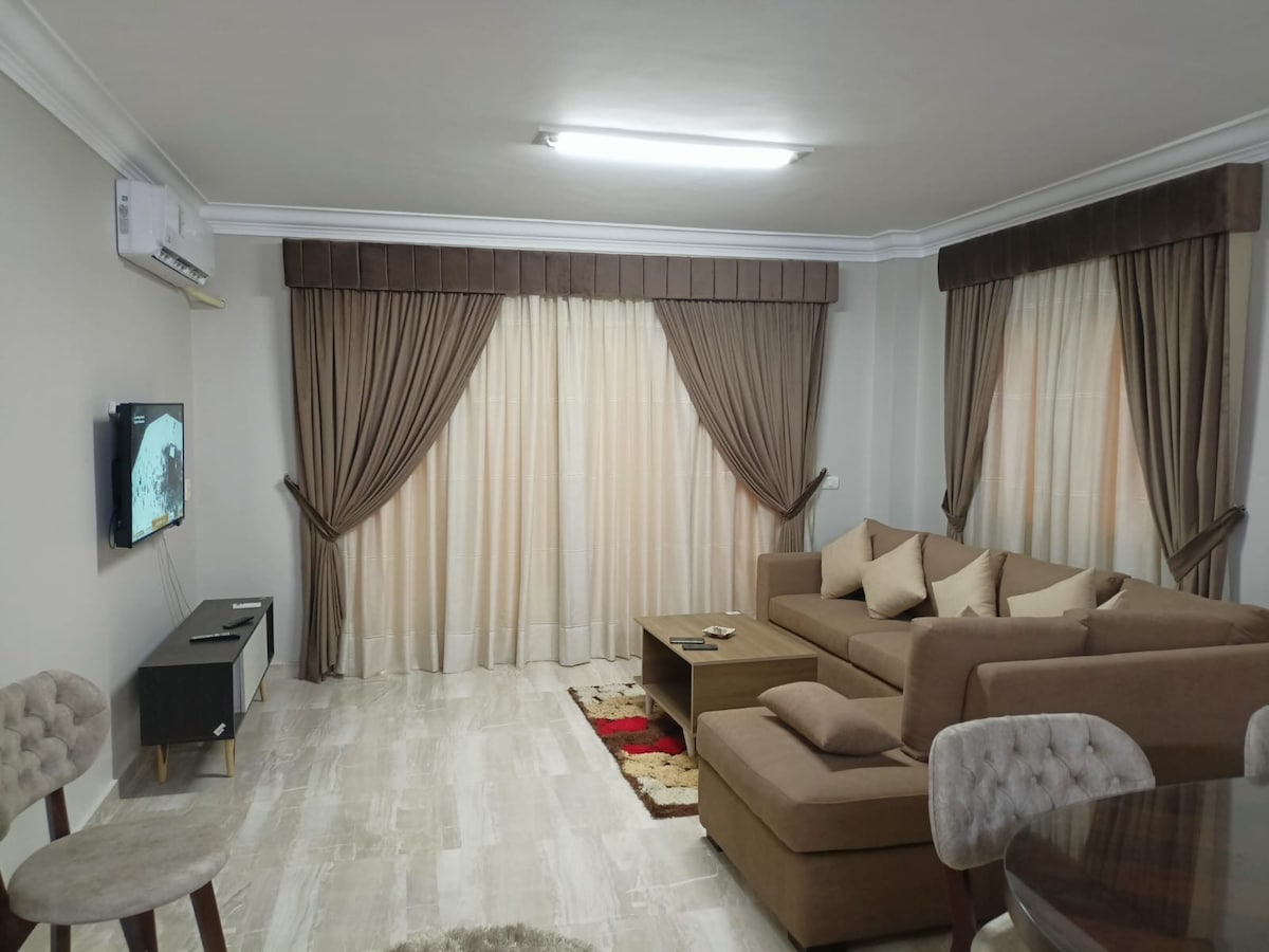 Enjoy a stylish experience at Welcome to your spacious family-only retreat in the heart of 6th October City! This modern 3-bedroom, 2-bathroom apartment is designed for comfort, relaxation, and convenience—perfect for families and business travelers who want a quiet, clean, and fully equipped stay. The Space 1 bedroom with a double bed 2 bedrooms with two 120cm beds each 2 full bathrooms with showers Bright living room with a 55” Smart TV Fully air-conditioned for year-round comfort