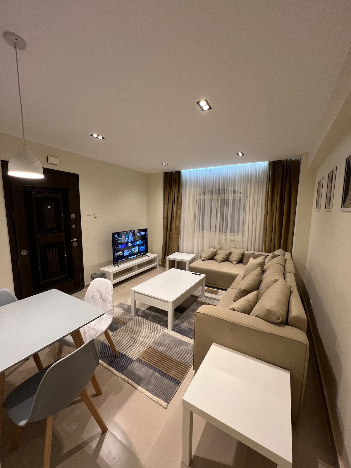 Welcome to our spacious 3-bedroom, 2-bathroom apartment! Our apartment is fully air-conditioned and With a 55" flat-screen TV and free internet. The kitchen is fully equipped with everything you need , including a refrigerator, stove, oven, and microwave. The apartment is also fully furnished with modern new furniture. Our apartment is perfect for families. The master bedroom features a comfortable king-size bed. The second bedroom has a queen-size bed, while the third bedroom has two twin beds.