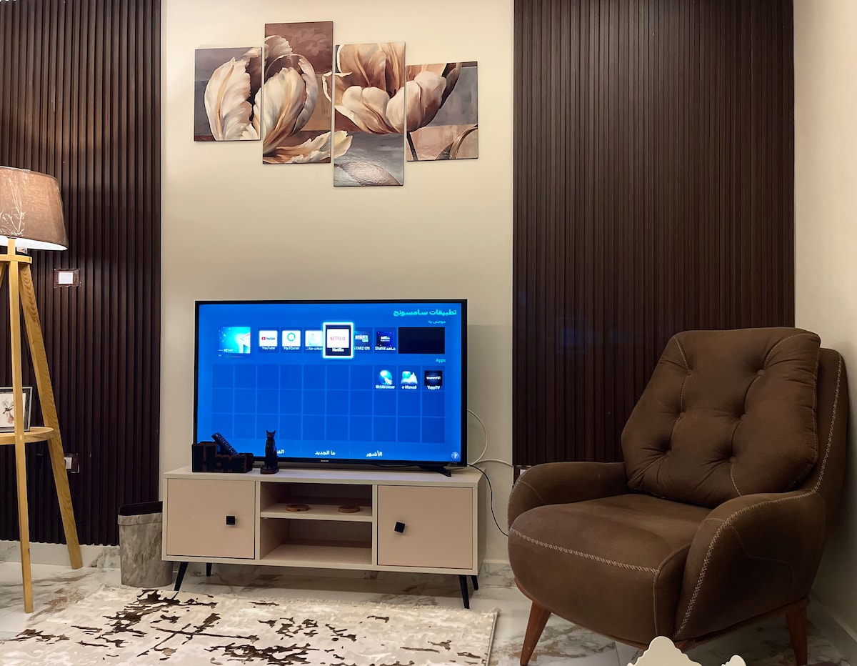WS Luxury Apartment is located in an elegant villa district in the heart of West Somid. The apartment features a private garden, electric shutters, 5 Smart TVs, modern brand-new equipment, concealed air conditioning, and super-fast 5G internet. With stylish modern finishes and exceptional cleanliness, this space is perfectly prepared to welcome you for a comfortable and luxurious stay just about 15 mins from Mall of Arabia and Arkan in Zayed.