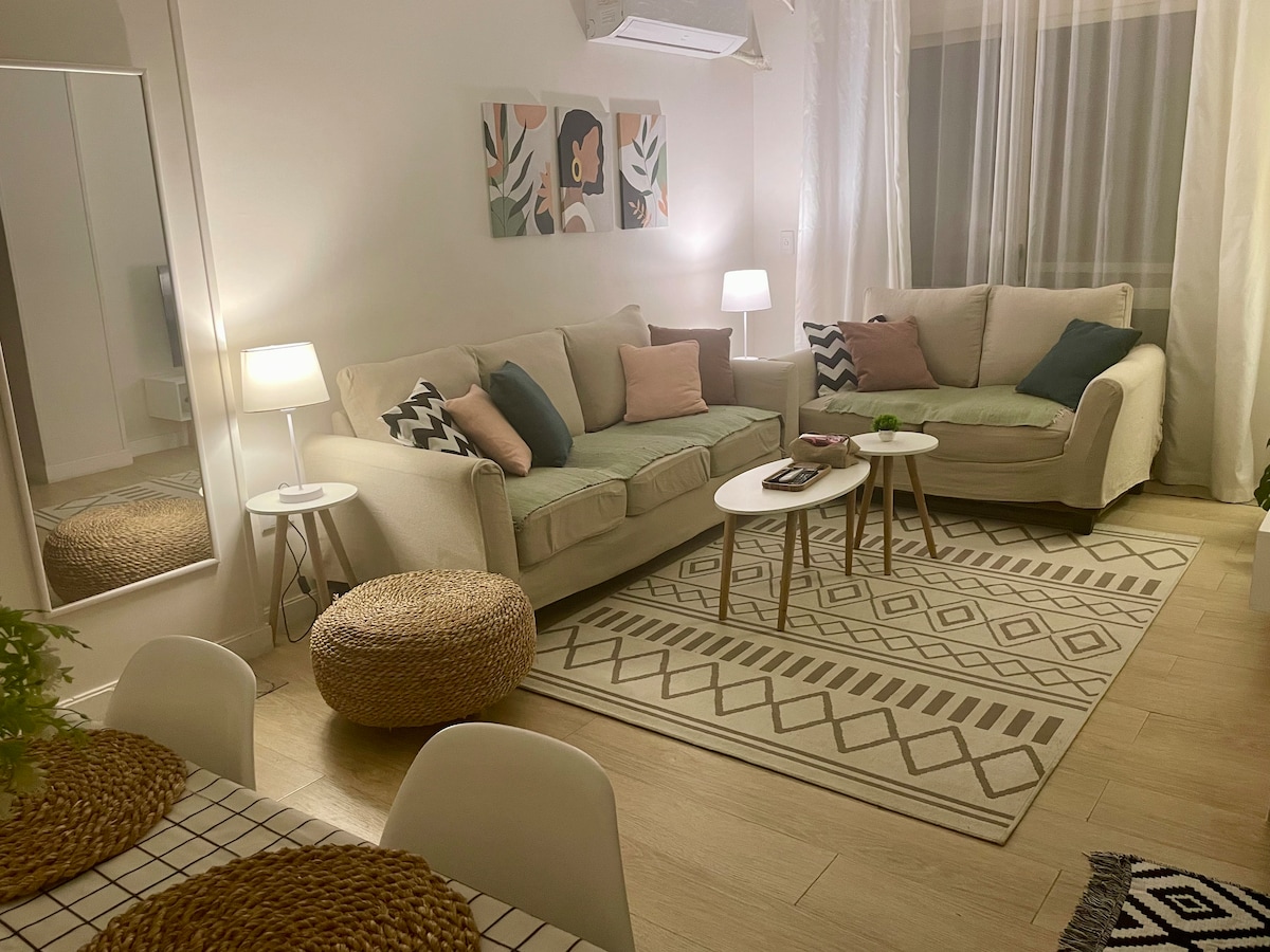 Welcome to our Nileview loft, Your charming home in the heart of Zamalek Island, Cairo's most central, safe, and vibrant hub. The stylish living room boasts a 55-inch curved smart TV and panoramic views on the Nile. A boho living room with a bamboo swing overlooks a gorgeous Nile view. Two cozy bedrooms featuring memory foam mattresses, hotel-grade Egyptian cotton beddings. Relax in comfort and style with a touch of bohemian charm by the Nile."