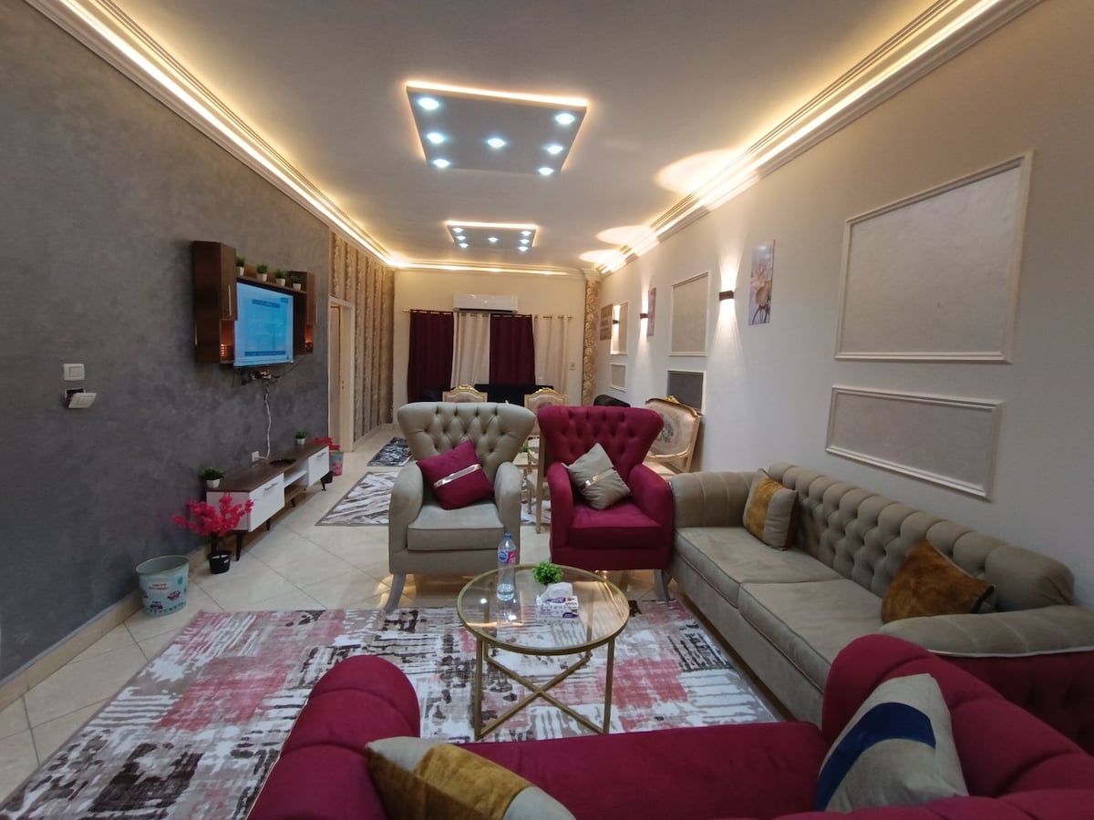 Grand floor with private entrance location of the apartment is very special nearby every thing apartment is in a residential area safe and secure for you and your familyThere no disturbance or noise of any kindThe apartment is sunny and brightThe sun enters it from all directions Complete Privacy for u and ur guest very comfortable 2Bed rooms with 2King bed for couple's living room with comfortable sofa with 65 inch SmartTV connected by WiFi and dining room 4Airconditioning bathroom kitchen