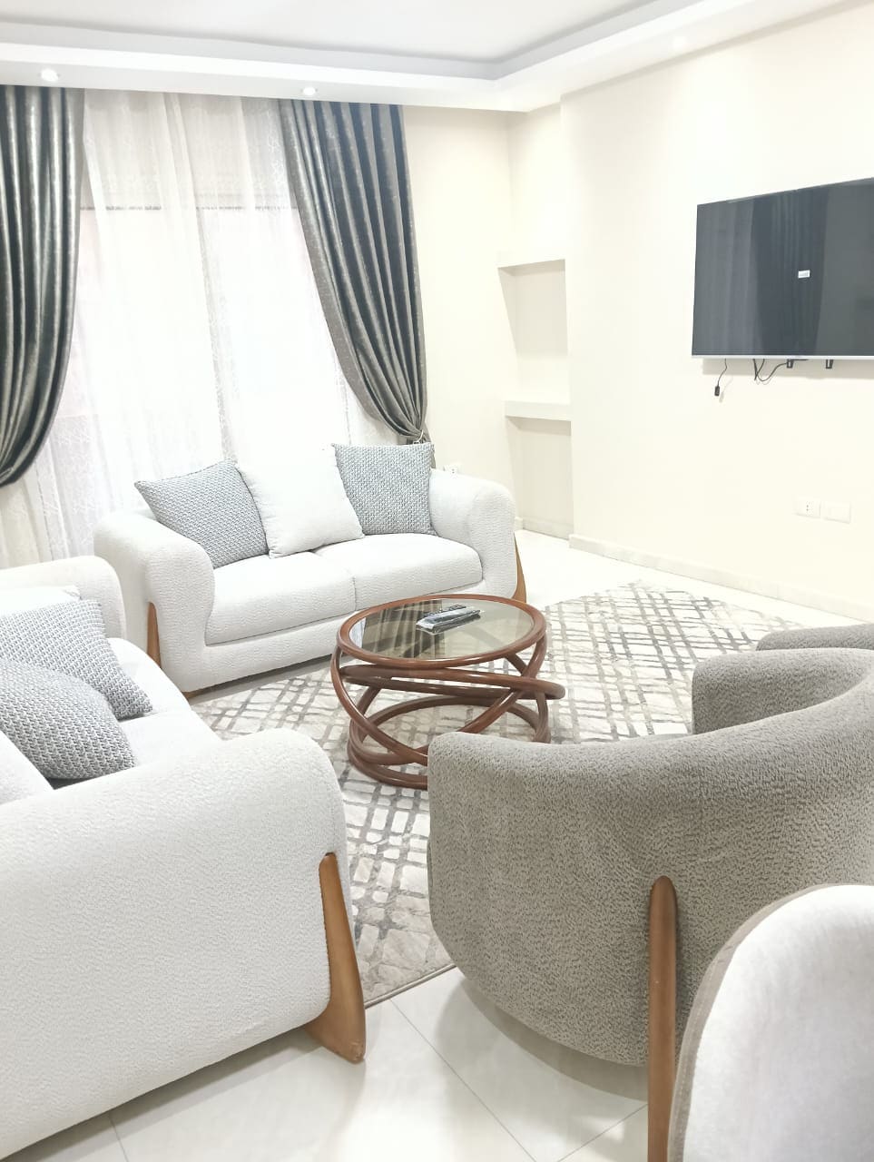 A very modern apartment in the most prestigious street of Mohandessin . next to the embassies and it is characterized by calmness and the apartment has all the appliances.
