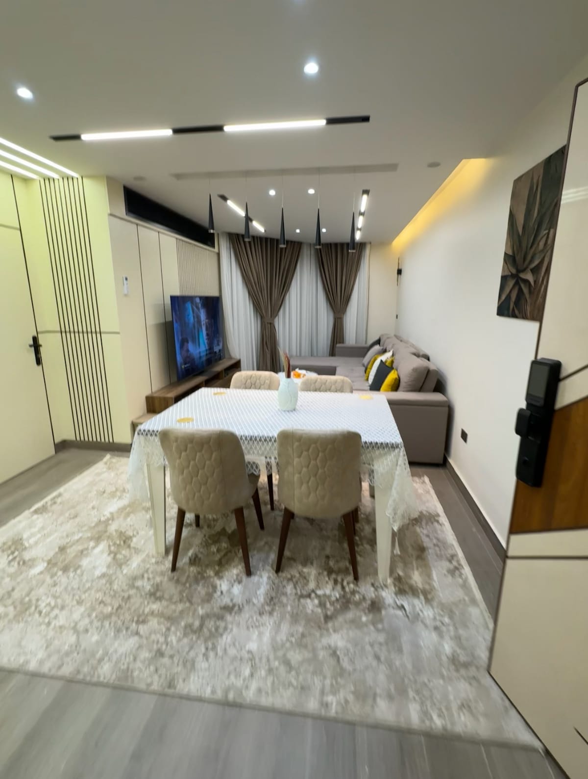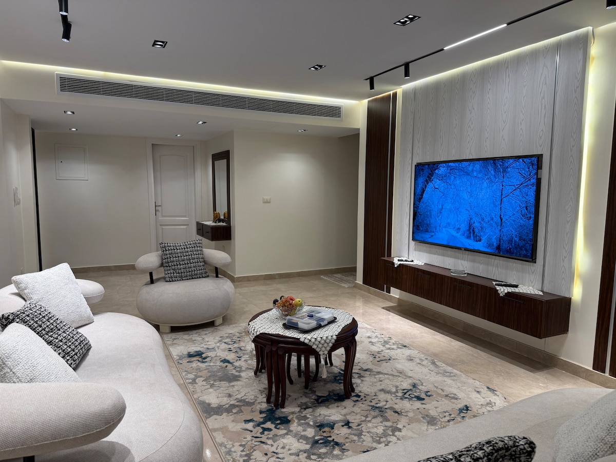 Welcome to our modern 3BR (200 sqm) hotel apartment by West Somid Developments! Designed for families, groups & professionals. Enjoy 5G Wi-Fi, 4 smart TVs, electric shutters & new furniture. 24/7 security, guest lobby, food delivery & optional cleaning. Guests can also enjoy a shared rooftop lounge — great for movie nights, relaxing evenings & family time. Just minutes from Mall of Arabia & top Zayed spots! ما نقدر نستضيف أي ثنائي عربي غير متزوج في نفس الشقة.