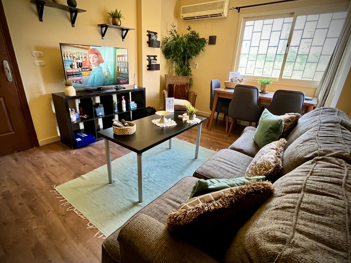 Cozy Apartment Near Pyramids & Museums – Great Location! Stay in a stylish and comfy apartment in central Sheikh Zayed, close to the Pyramids, Grand Egyptian Museum, and the vibrant Waslet Dahshur area filled with elite restaurants and cafés. This apartment includes a private living room, kitchen, bathroom, and a relaxing balcony. You'll be just minutes from malls, clubs, supermarkets, and more. I’m also happy to guide you with tips and locations to make your stay unforgettable!