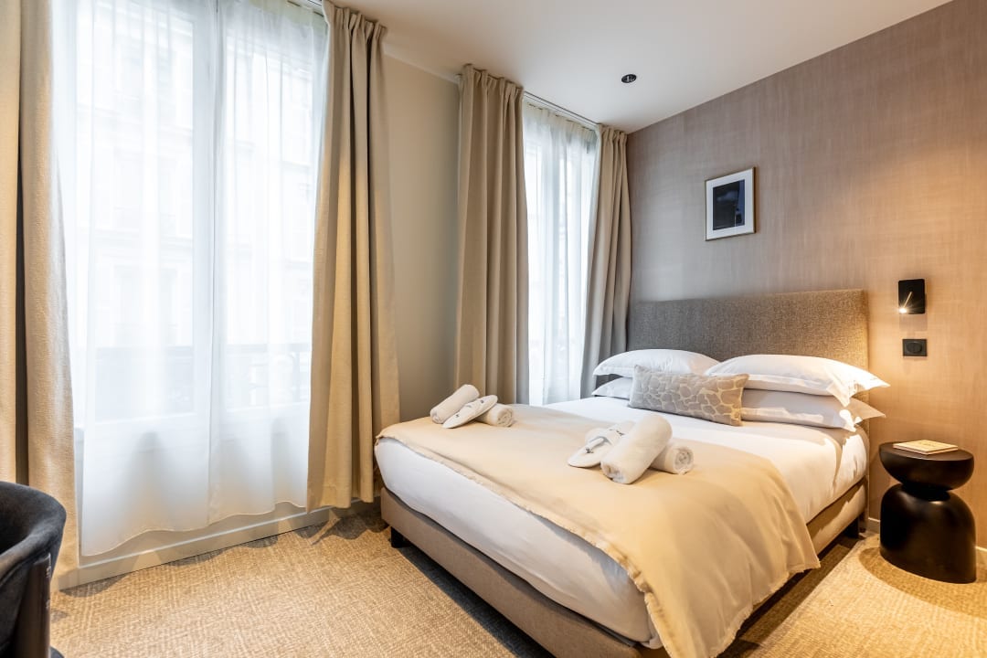 Bienvenue dans votre chambre, pensée pour allier confort, élégance et fonctionnalité au cœur de Paris. Située au sein d’un hôtel design entièrement rénové. La décoration sobre et contemporaine, fidèle à l’univers de l’hôtel, crée une atmosphère apaisante et chaleureuse, parfaite pour un séjour parisien réussi.