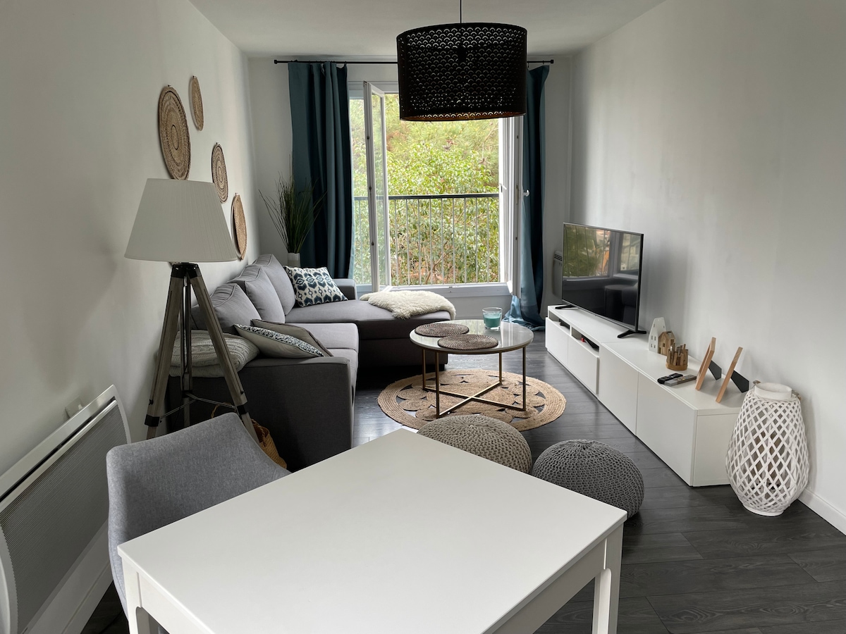 Superbe appartement de 35 m² entièrement refait à neuf, situé à l'entrée du Parc National des Calanques. Idéal pour 2 ou 4 personnes (chambre avec lit double, salon avec canapé lit, TV, WIFI, cuisine complètement équipée, salle de douche, wc séparé et terrasse ombragée). Les hôtes ont accès à un sublime toit terrasse avec piscine, transats et pergola qui offre une vue magnifique sur le Parc. Départ calanques à 5 min en voiture et 15 min de la plage. L'accès à l'appartement se fait par escaliers.