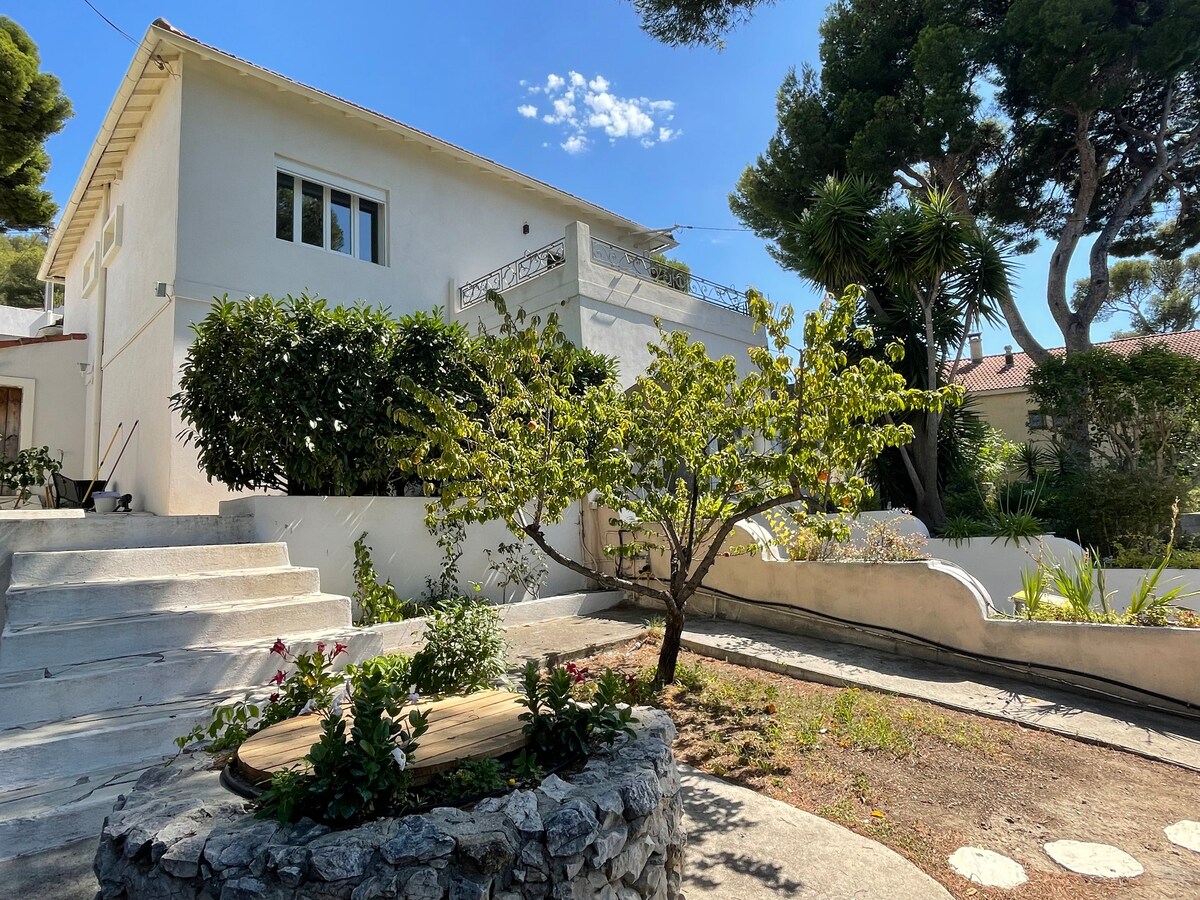 Belle dépendance de 25m2 refaite à neuf en arrière de jardin avec décoration soignée à 2 min de la plage de la pointe rouge (10 min à pied de la plage), 5 min du stade Vélodrome et 15 min des calanques. Cuisine tout équipée. Salle de bain avec douche. 1 couchage. 1 grand lit double confortable. Pour les demandes en dehors des périodes ouvertes, n'hésitez pas à nous contacter Amis windsurfeurs / randonneurs / grimpeurs et tous les autres, bienvenue