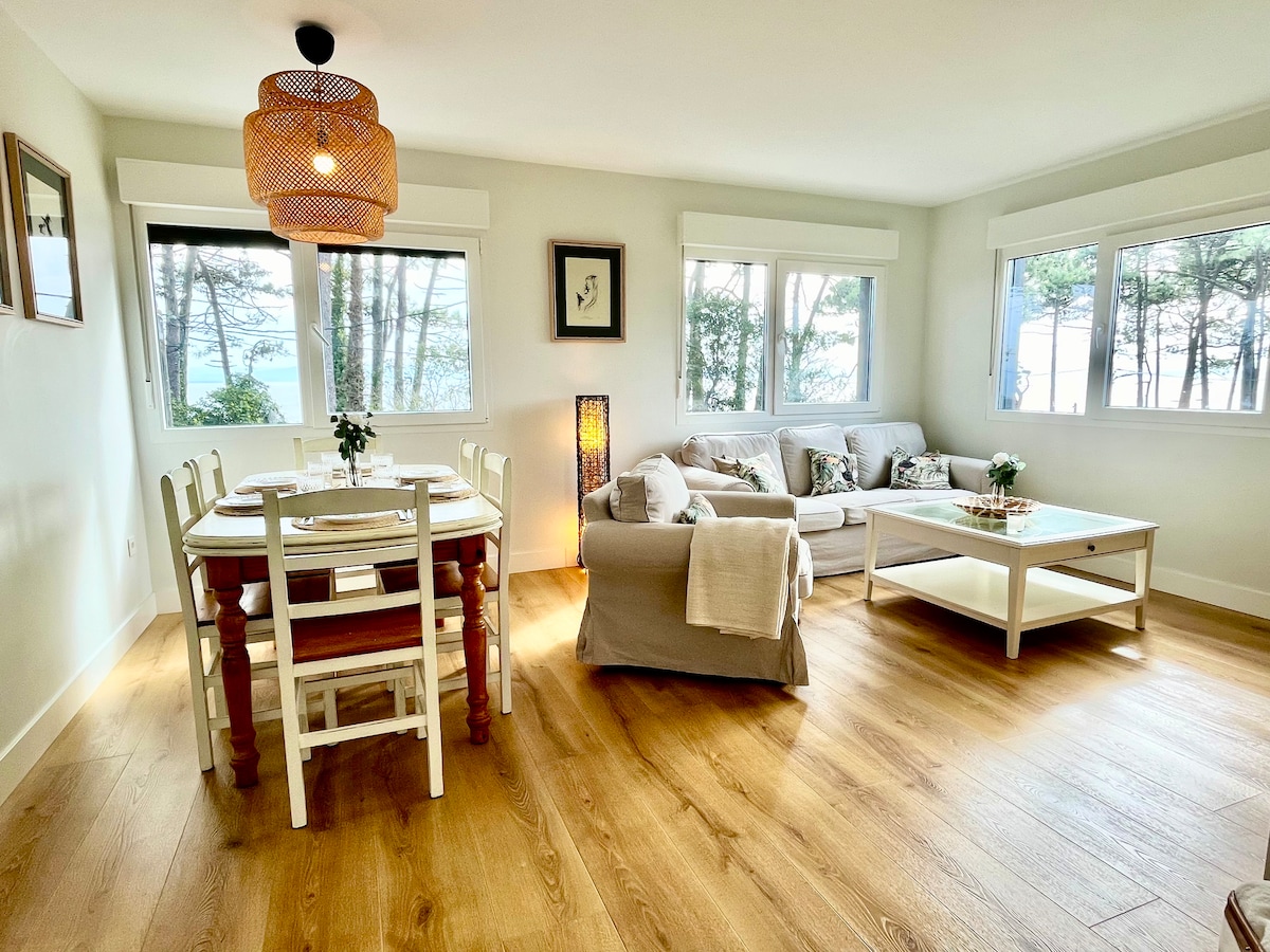 SEA, TERRACE, SEA Apartment in the urban area of Vilanova with large terrace above the sea and direct view of the marina. Access to small beach next to the door of the building and 100m beach of several km. Totally renovated and modern apartment with the necessary services and abundant tourist material, as well as a privileged starting point to get to know the Rías Baixas, Illa de Arousa, Sanxenxo, Pontevedra, Santiago de Compostela, Illas Atlánticas, Albariño wineries and much more.