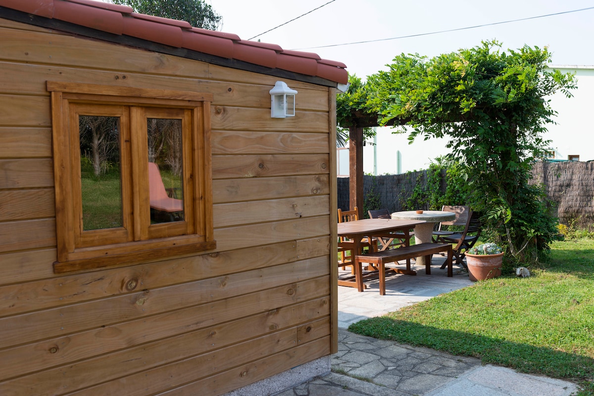 Esta acogedora mini casa está situada a tan solo 6 kilometros de Santiago de Compostela, en un entorno privilegiado y muy tranquilo, rodeado de carballos centenarios y naturaleza. Está en el Camiño de Fisterra y es perfecta para alojarse unos días para conocer Galicia o para el descanso merecido de los peregrinos que se dirijen a Fisterra. Tiene un salón con mini cocina, un baño amplio, una cama de matrimonio y una pequeña terraza para disfrutar los días de buen tiempo.