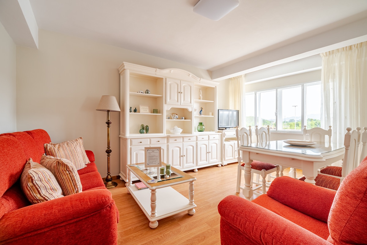 Piso exterior, tranquilo, próximo al centro y muy soleado para un máximo de 6 húespedes (cinco adultos y un bebé). Wifi 298 Mb. Construído en 1980, pero totalmente reformado recientemente. Cuenta con 2 dormitorios y está equipado con todo lo necesario: sabanas, mantas, edredones, colchas, toallas, productos de aseo y limpieza... Fácil acceso a playas y autopista. Delante del portal: parada autobús y párking fácil. Amamos a los perros.