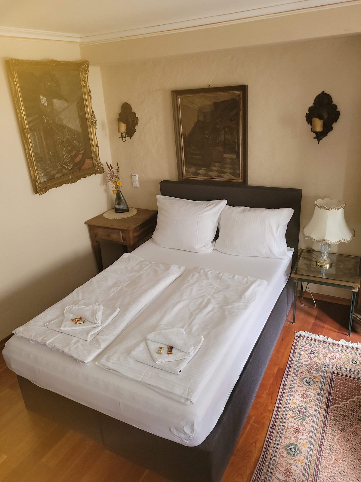 Die Unterkunft liegt sehr zentral in der historischen Aachener Innenstadt. Durch die liebevolle, antike Einrichtung bietet sie einen besonderen Flair für einen individuellen Stadtbesuch. Es gibt einen offenen Schlaf- und Wohnbereich mit angrenzender Küche und ein seperates Badezimmer.