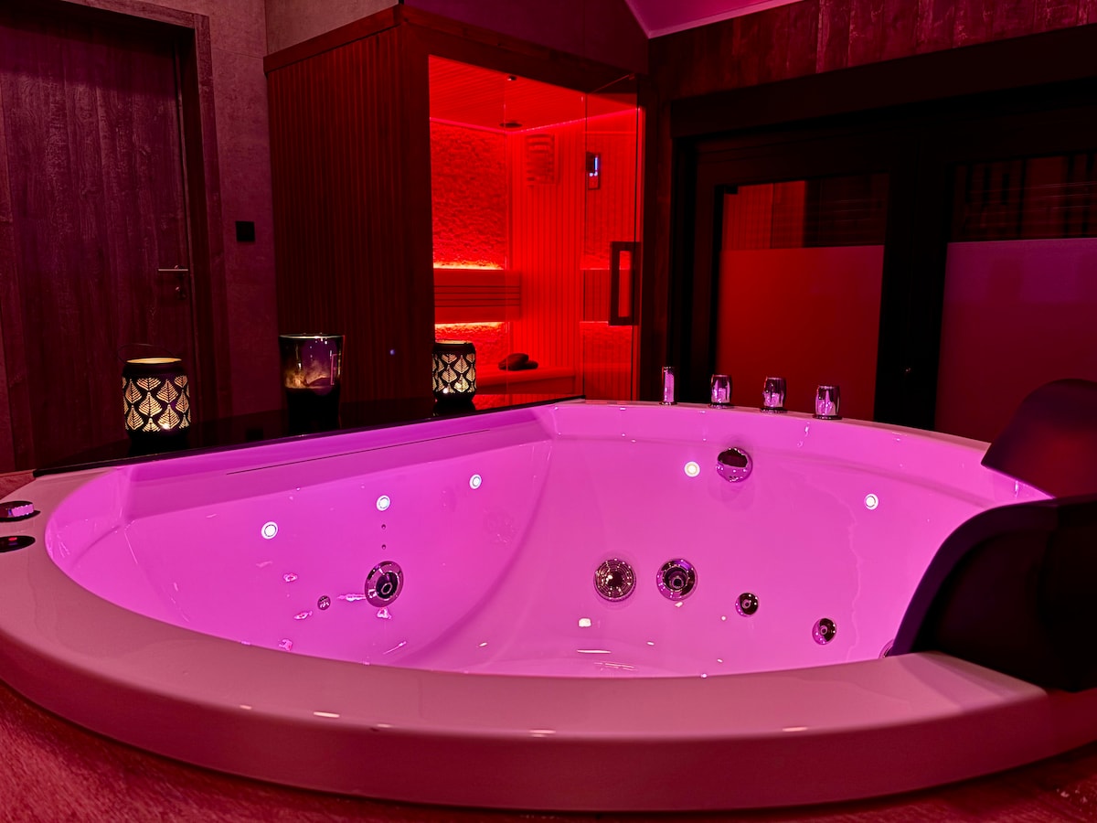 *NOUVEAU - ADULTS ONLY* Suite de charme duplex avec literie King size, jacuzzi, sauna, douche italienne, Smart TV 85" et stationnement réservé devant l'entrée 🅿️ Entrée/sortie autonome via digicode Extras ✨ sur réservation : 🕓 Entrée anticipée (à 16h15 au lieu de 18h) 🕐 Départ tardif (à 13h au lieu de 11h) 💖 Décoration romantique 🍖🧀 Assiette apéritive 🥐 Petit-déjeuner 💆♂️💆♀️ Massage relaxation DUO de 50 min. sur table dans notre salle de massage Infos après réservation