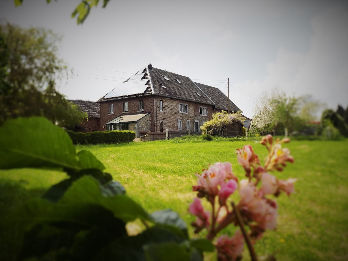 "La pause" a été décoré à l'aide d'objets de récupération de notre ancienne ferme. Le calme, la vue et l'espace jardin avec terasse est son point fort. L'appartement est de plein pied au 1er étage. Situé à la croisée des chemins entre : Aix-la-Chapelle(Aachen), Maastricht, Liège. Intérêt : ballades à pied, à vélo, brasserie artisanale, site minier, abbaye de Val Dieu, le cimetière américain, Valkenburg et Montjoie (Monschau) vallent le détour. Essuis fournis, linge de lit non (supplément).