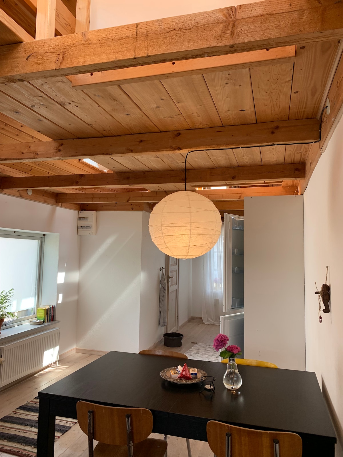 Nice and cozy 2 room apartment in 2 levels. There is room for two people in the bedroom. Additional there can be prepared for one more person to sleep upstairs in the living room on a folding cushion (+ 100 Dkr/night). From the apartment there is 20 min. walk to the center of Aalborg. Bus 11 and 17 is near by. There is good opportunities to shop locally.