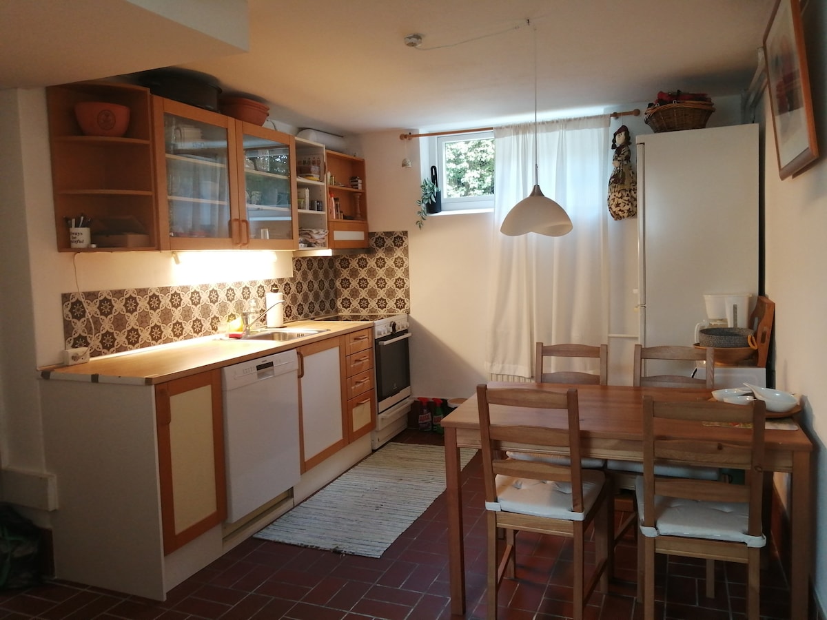 1 bedroom apartment with separate entrance, in the ground floor of our family house. Located in a quiet neighborhood with walking distance to Signalbakken, view to the entire city and fjord. 2 km distance to Techcollege and and direct bus connection. Apartment has a fully equipped kitchen with stove, dish washer and fridge/freezer. Combined kitchen and living room area and separate bedroom with cupboard and working desk. Toilet with a washing machine and a dryer.