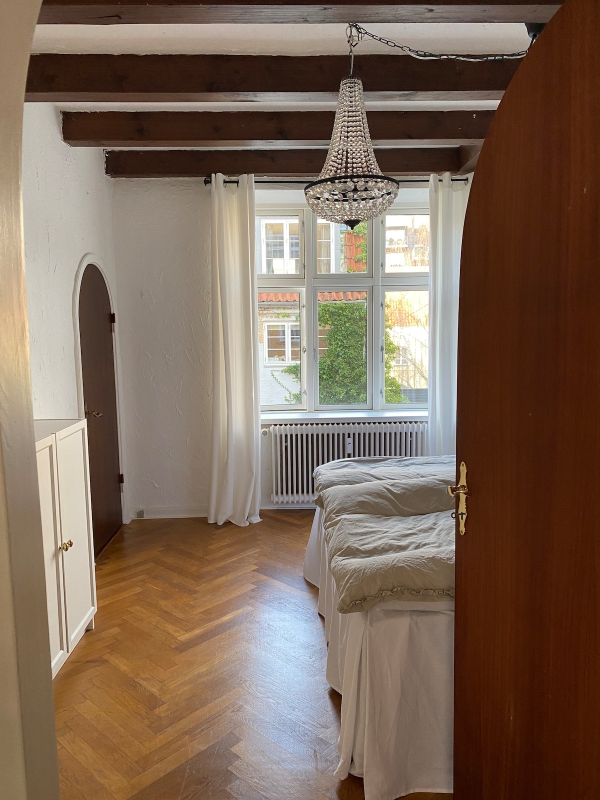 Lejligheden ligger i hjertet af Aalborg med kun 5 minutters gang til shopping, caféer, havnen og ikke mindst Jomfru Ane gade, hvis man gerne vil have sig en bette øl eller to. Der er mulighed for at parkere i p-hus lige rundt om hjørnet. Alternativt er der gratis parkering døgnet rundt ved Saxogade eller havnen (ca. 5-10 minutter til fods fra lejligheden). Obs. Pejsen må ikke anvendes. Den er kun til pynt.