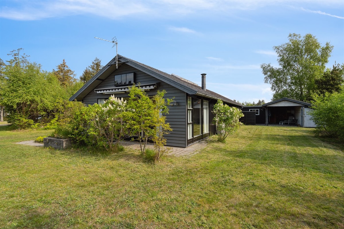 I ét med naturen, hyggeligt stort nyrenoveret sommerhus i fredeligt område. Er I til strand, skov, feriebyliv, MTB, golf, padel, Fårup Sommerland eller blot en tur væk fra det hele? Her er noget for alle. Huset er holdt i original stil med plads og luft til ferie med op til 2 familier (9 gæster). Uanset vejret kan udebruser, vildmarksbad, koldvandkar og sauna nydes. Hus, anneks og carport skaber læ, og bindes sammen af træterrasse og lille græsplæne med mulighed for diverse udeaktiviteter.