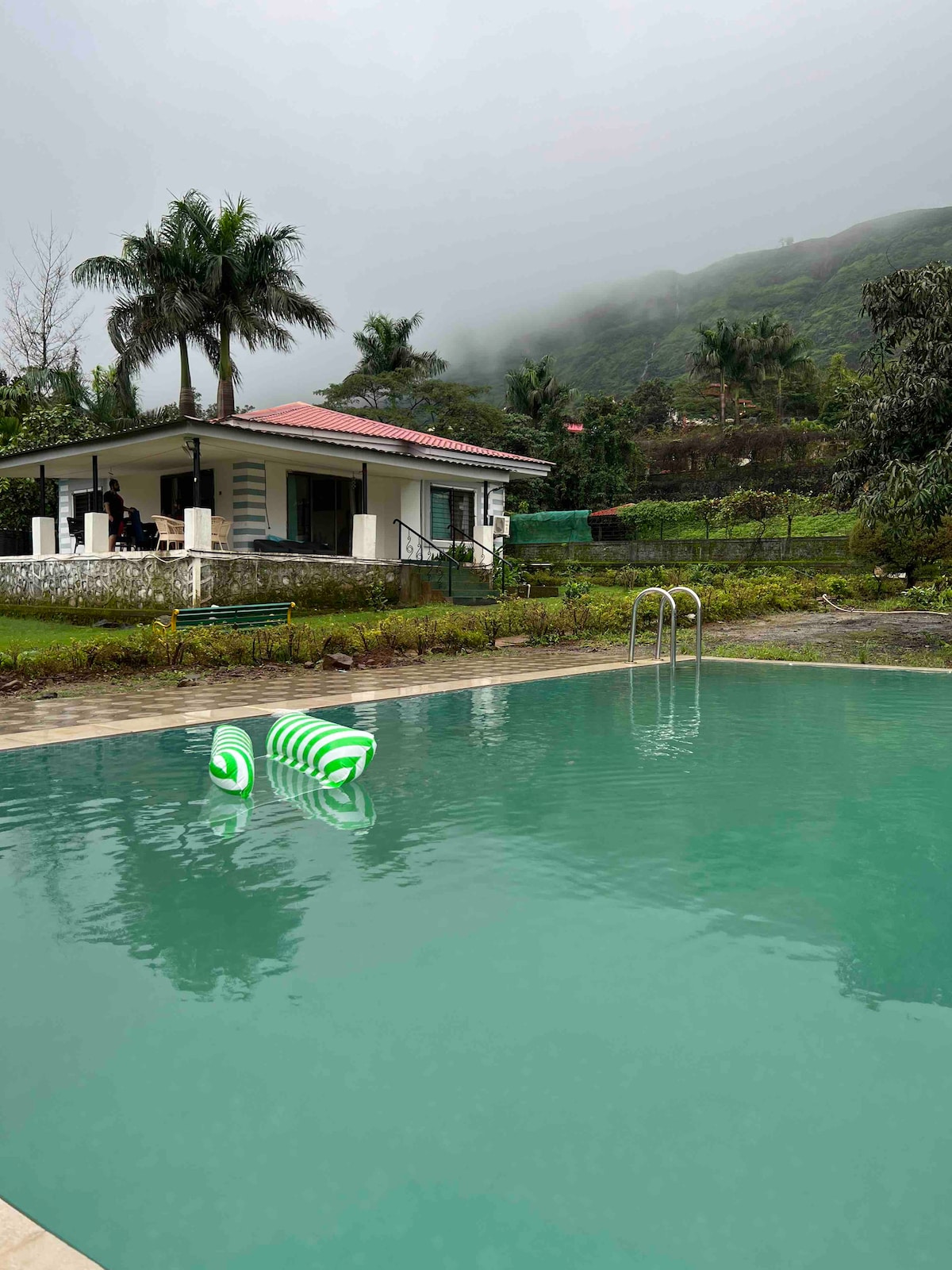 'Villa Elsewhere' is a luxurious, beautiful, private pool villa, just 60-90 mins drive from Mumbai. Surrounded by lush green views of fields, hills, and sounds of nature. The Villa has 3 AC en-suite bedrooms, a large AC living room that opens into a private pool and large deck with a Bar. The kitchen is fully equipped where a chef can make delicious meals (*extra charge). It is pet friendly (*extra fee). BOOK to relax in a calm peaceful vibe, for a get together, or to host the best part ever!