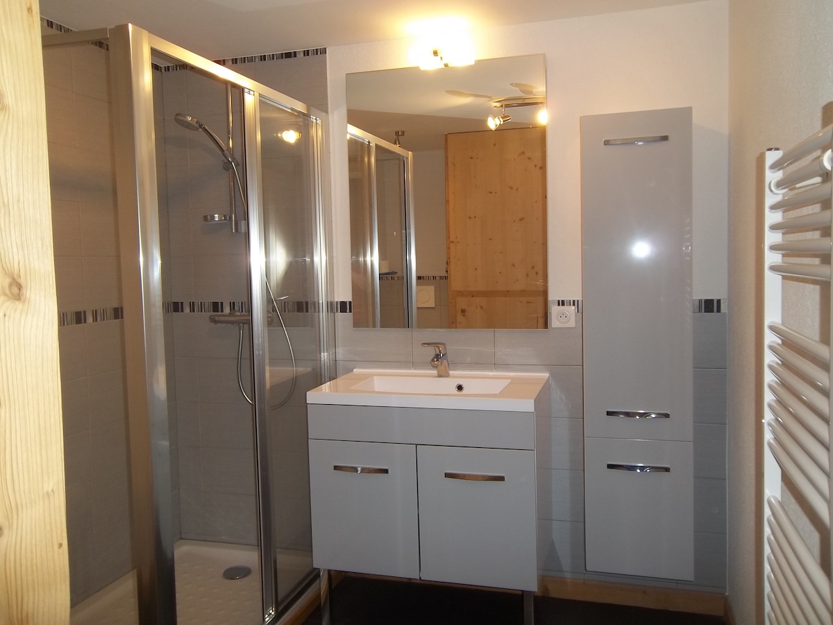 En Suisse, dans le petit village de Leysin, canton de Vaud, appartement-studio au rez-de-chaussée d'un chalet, 2 pièces 40m2 avec wifi, séjour-salon, salle de bain avec douche, coin canapé-lit, cuisine équipée avec induction et table-billard. Entrée indépendante, terrasse 15 m2 avec vue sur la plaine du Rhône et Dents du Midi, une place parking devant le chalet . Situé à 1300m d'altitude, à 300 mètres de la gare et du bus navette pour rejoindre pistes de ski et départ de randonnées.