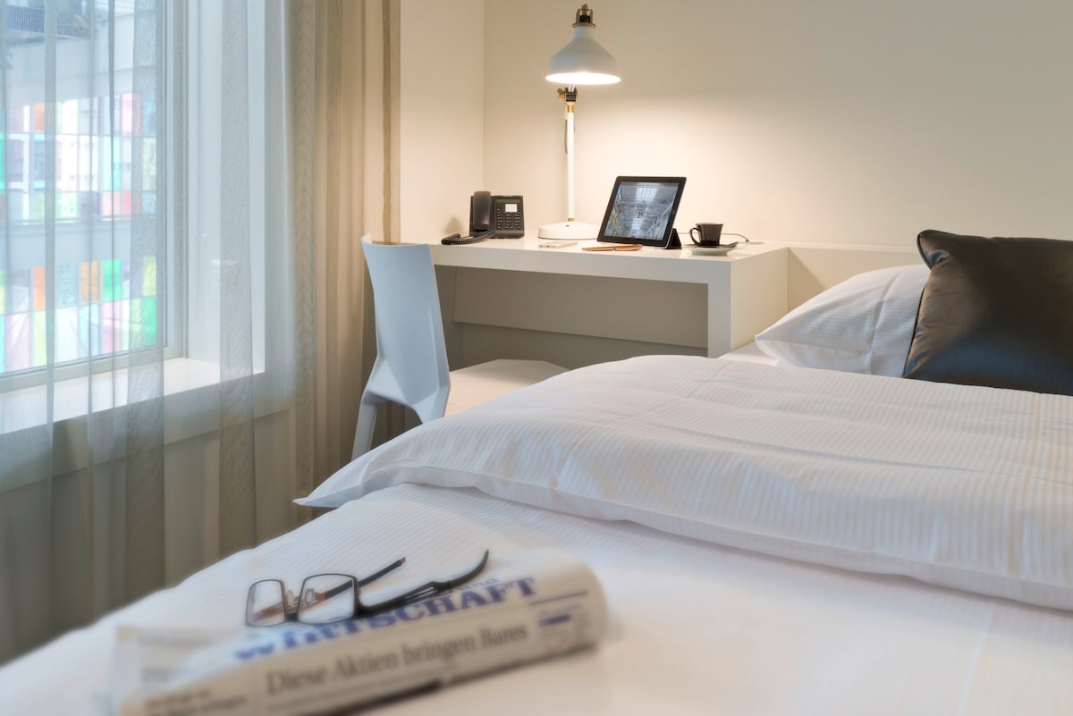 18m² / Queen Bett (1.20 - 1.40m x 2.00m) Unsere klimatisierten Style Einzelzimmer bieten besten Schlafkomfort dank Qualitätsbetten. Am Schreibtisch kann private oder geschäftliche Arbeit erledigt werden, mit gratis WLAN und gratis Telefonie in der Schweiz. Der Laptop passt in den Safe und der Föhn gehört ebenso sowie die Kosmetikartikel zur Ausstattung. Durch die grossen Fenster können Sie das Farbenspiel der 660 bunten Glasfenster des Künstlers Ugo Rondinone geniessen.