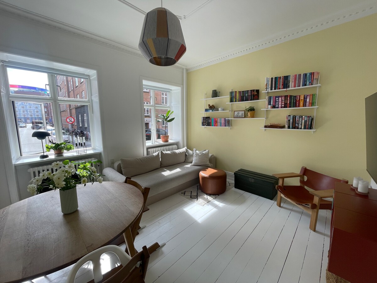 Det er en attraktiv lejlighed for såvel korte som lange ophold. Placeringen er midt i Århus, og alligevel er der næsten ingen trafikstøj. Lejligheden er renoveret og fuldt udstyret. Allergivenlig. Der er klassiske danske designmøbler. Der er to senge i soveafdelingen og en dobbelt sovesofa i stuen, så det er muligt at være op til fire personer. Fuldt udstyret køkken med spisebord med plads til fem. Der er the og kaffe til rådighed. Der er egen indgang, og det er muligt at benytte gårdhaven.