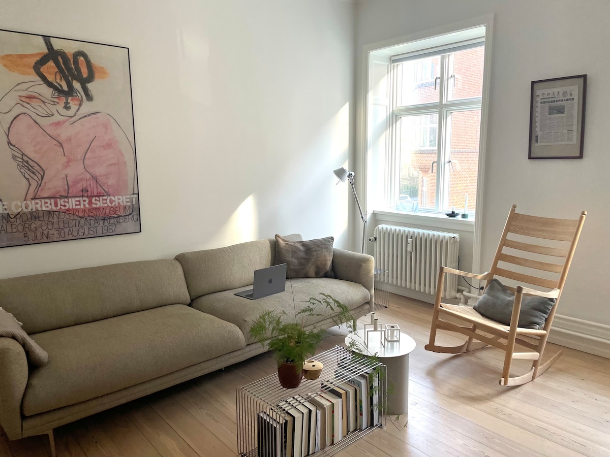 Cosy apartment in Aarhus. 3 bedrooms with a double bed in all 3. Bathroom with shower, my favorite room, treat it with love . There is a balcony to enjoy the morning coffee and sun. Privat apartment full of art, design and love. I live here, so my things is here, when you live here. I prefer to have a couples, families and colleagues, but you are welcome. Just send me a message and tell me a little about yourself. In the city and public transport right outside the door.