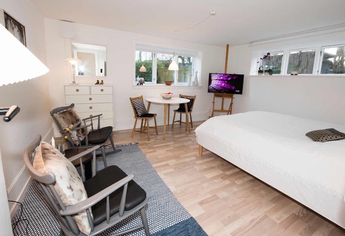 Light and airy apartment with high ceilings. Decor style is Nordic and cozy. High quality beds. Sea views from the bedroom. All modern conveniences. Unique terrace with lounge furniture and the most beautiful morning sun and sea views. Lys og luftig lejlighed med højt til loftet. Indretningsstil er nordisk og hyggelig. Senge i høj kvalitet. Havudsigt fra soveværelset. Alle moderne bekvemmeligheder. Unik terrasse med loungemøbler og den skønneste morgensol og havudsigt.