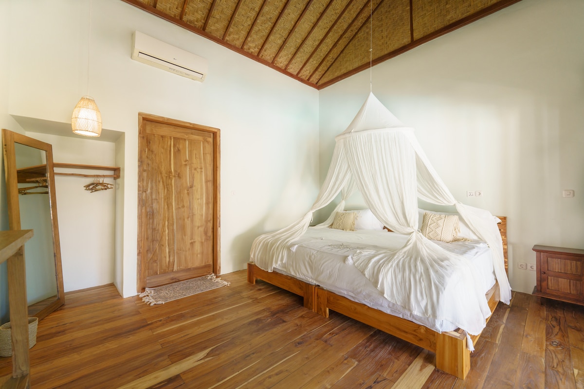 A charming one-bedroom villa nestled in the peaceful area of Amed. While this villa doesn’t offer a sea view, it makes up for it with a serene and private setting, perfect for those seeking a relaxing getaway. The spacious bedroom features a comfortable bed, air conditioning. The modern bathroom is well-equipped with all the essentials you need. The fully equipped kitchen allows you to prepare your own meals, while the surrounding lush greenery ensures a peaceful, nature-filled environment.
