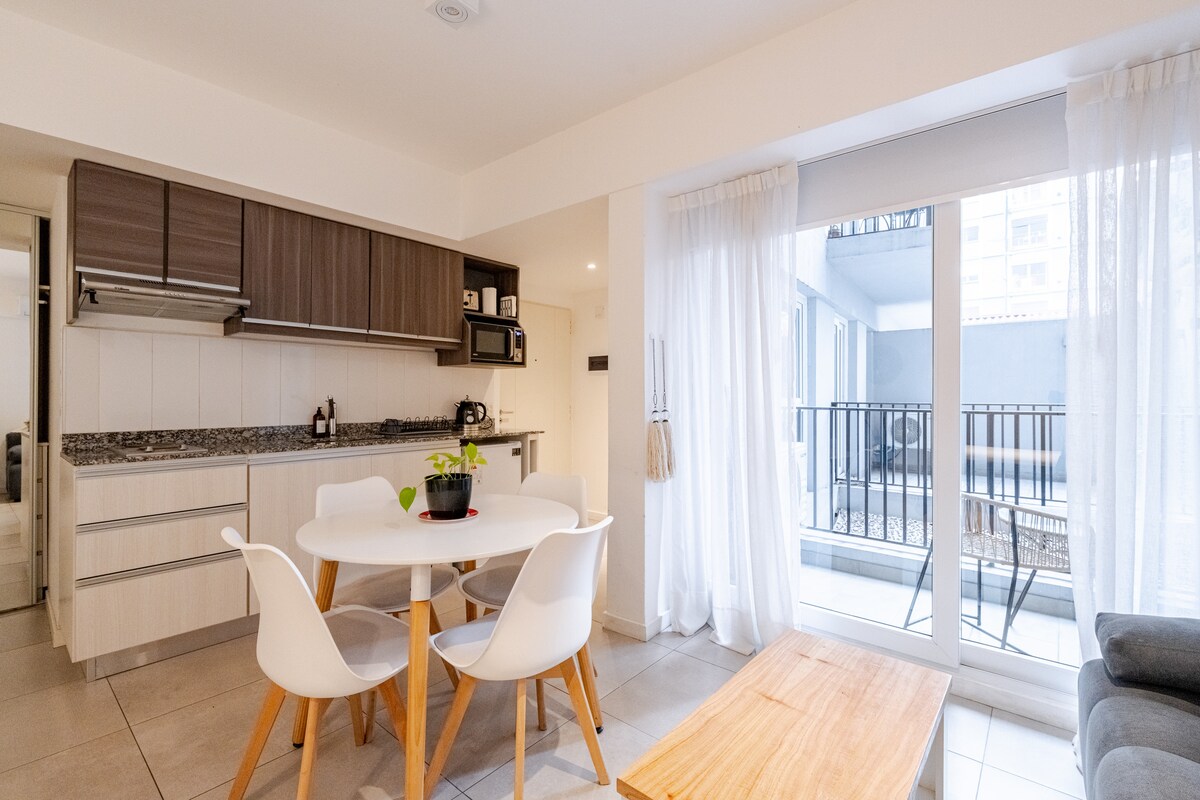 Moderno estudio en Palermo, Bs. As. con terraza privada y parrilla. Este departamento nuevo combina comodidad y estilo con una terraza privada y parrilla. Ubicado en el corazón de Palermo, disfrutarás de arte, tiendas de diseño y restaurantes de moda. Además, estarás cerca de parques para pasear o hacer ejercicio. Este alojamiento es ideal para experimentar la vida porteña con comodidad y buen gusto.