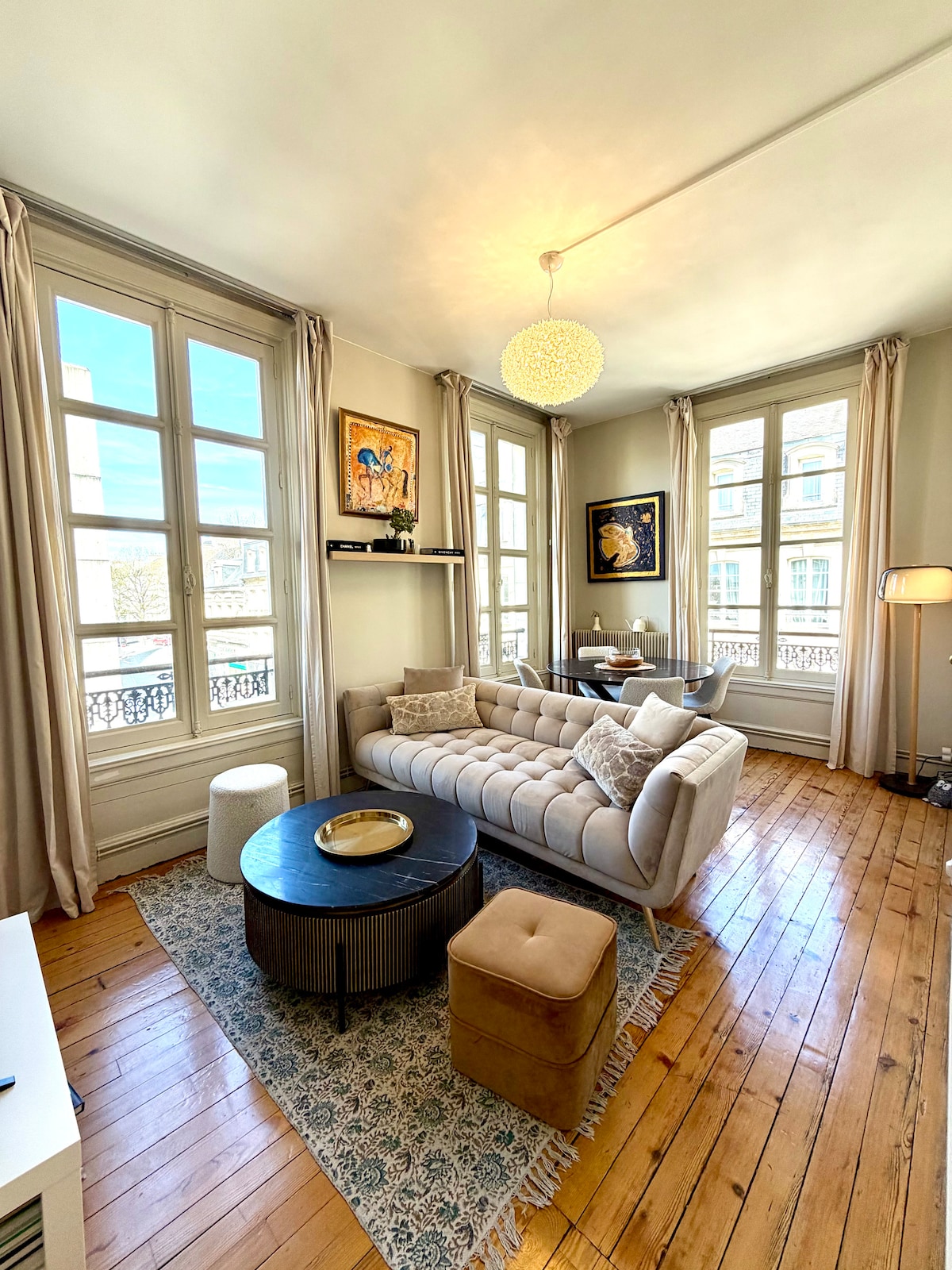 Bienvenue au « Bienheureux », un appartement de caractère du XIXᵉ siècle, situé en hypercentre de Caen, au cœur du centre historique, à deux pas des lieux emblématiques… et pourtant au calme absolu. Décoré avec soin dans un esprit bohème et chaleureux, ce logement a été pensé comme une véritable parenthèse de confort et d’élégance. Vous y trouverez une atmosphère douce, des matériaux authentiques et une cour privée sans vis-à-vis, rare en plein centre-ville.
