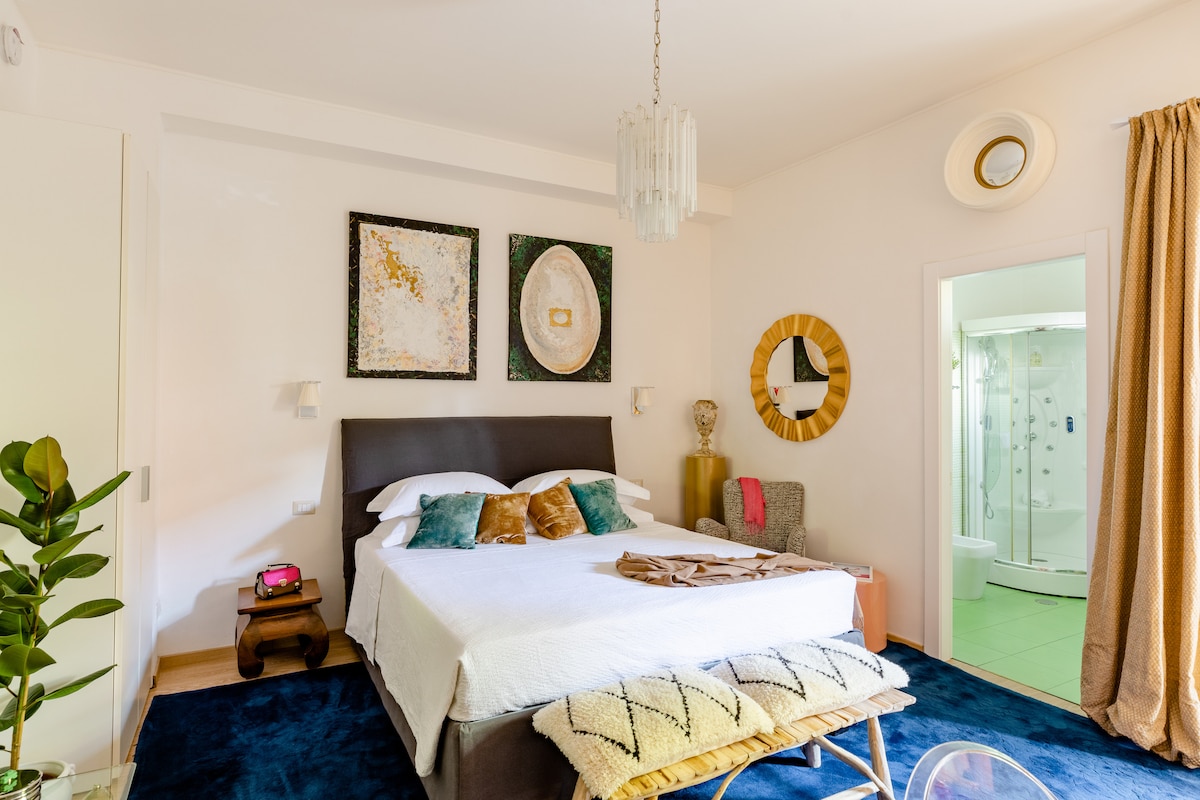 Bright and quiet penthouse apartment in the heart of Trastevere, with a wonderful terrace and an unparalleled view of charming roman roofs and the Gianicolo hill. The flat is meticulously refurbished and set in a picturesque cobblestoned street, just around the corner from the lively restaurants and cafes. La Casetta al Mattonato is located on the 3rd floor (41 steps, no elevator) of a 1600s typical roman building, within walking distance of all major attractions.