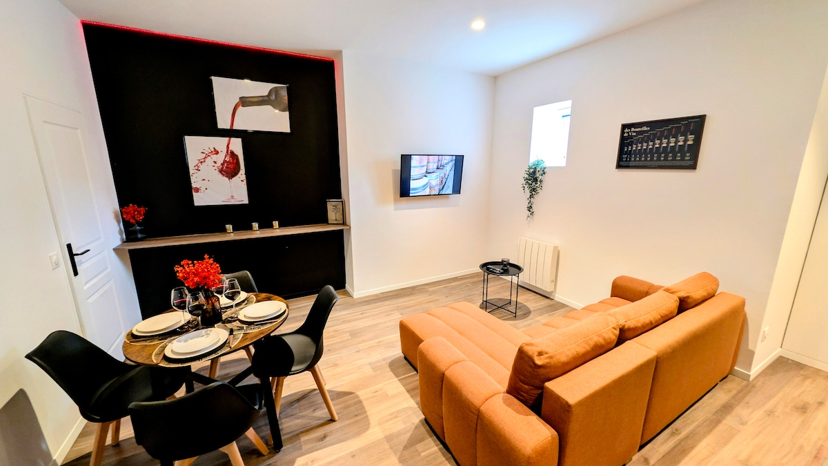 Logement rénové avec équipement et mobilier neufs : - Pièce principale avec canapé lit, literie haut de gamme et son linge, coin repas et coinTV - Kitchenette équipée frigidaire, micro-ondes cafetière Senseo , plaque de cuisson, bouilloire, vaisselle, torchons... - Salle d'eau, grande douche, lavabo, serviettes, WC Studio en centre-ville proche de tous commerces, restaurants, cinémas, collégiale, musée, parcs situé dans un petit immeuble calme au 3ème etage (larges escaliers)