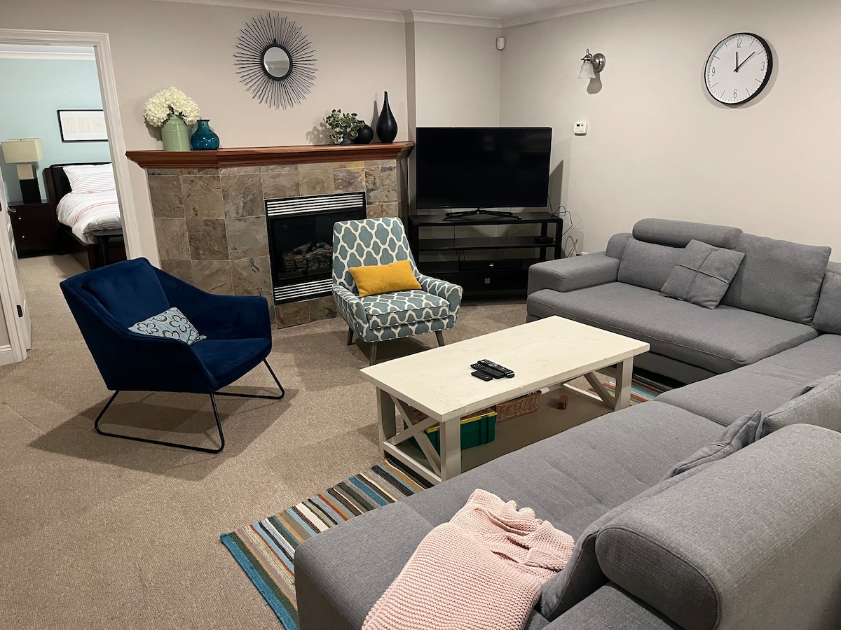 Two bedroom suite, situated at the end of a quiet residential road with easy access to hiking and mountain biking trails. The nearest waterfall is 100 steps from the property. A perfect place to rest and unwind and explore nature in all its beauty. Shopping and restaurants are from 5 mins away by car. It has a fully equipped kitchen, in-suite laundry and outdoor seating, fire pit, bbq & hot tub. Bedrooms can both be twins or kings or a combination for flexibility, please request when booking.