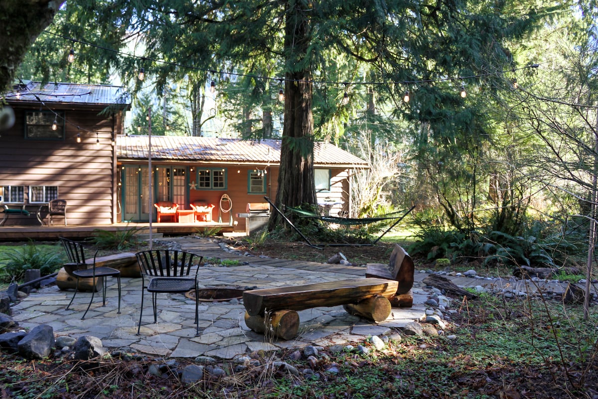 Wake up to a symphony of birds at Black Tail Den! Relaxing, cozy, and thoughtfully curated, our cabin is the perfect place to unwind after hiking near Mt. Baker or boating on Silver Lake. Beautiful views surround the property, including the private spa. Built In 1967, we recently renovated, accenting all the vintage charm. Our cabin is a duplex, Black Tail Den is your own private unit at ground level with no shared dwelling walls, private entry, two decks, SUPs, BBQ, backyard and hot tub.
