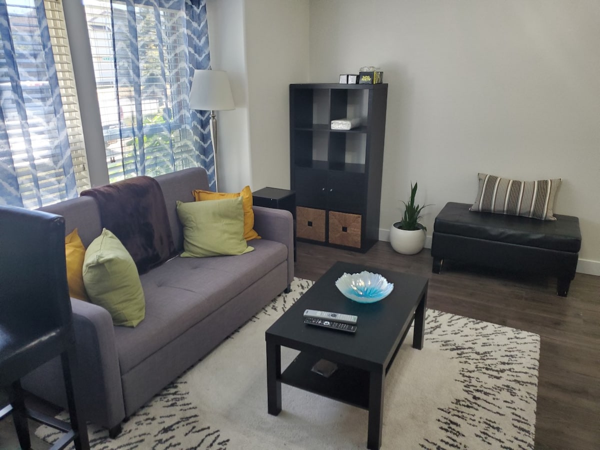 两居室家庭套房,带私人后院和停车位