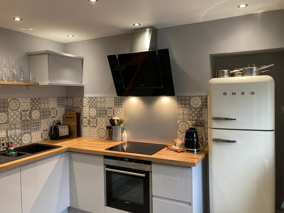 时尚1卧室公寓,带露台,靠近Leith Walk