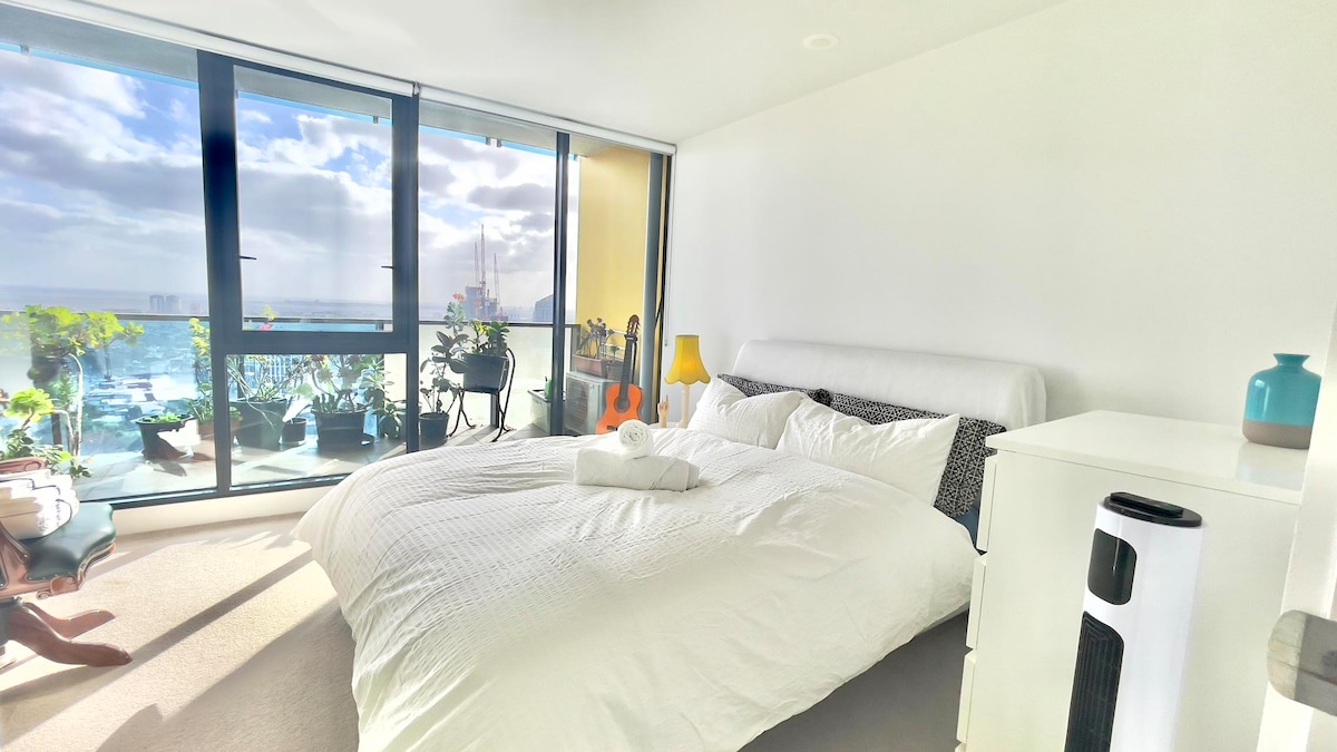*40 night max stay with option to extend at owner’s discretion Unique getaway on the fringe of Melbourne with stunning city views from level 15 of The Emerald building. Park & bay views from the rooftop garden, with free BBQ and hot tub BBQ in the park out front too Enjoy dinner or drinks on your private balcony. Secure entrance to building Q bed & sofa bed options Walk to Rod Laver arena, Myer music Bowl, Botanical gardens, NGV, Arts Centre & CBD Anzac station NOW OPEN opposite No pets