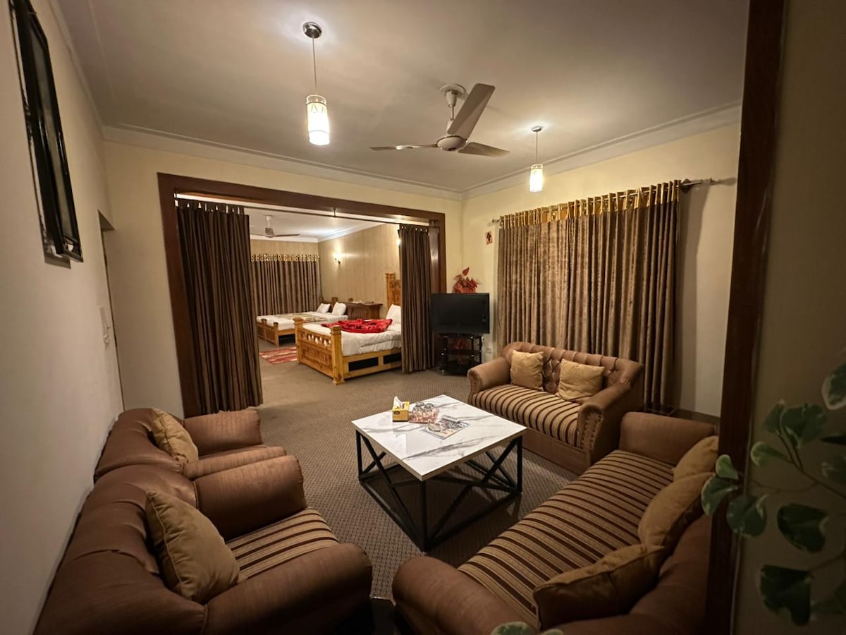 Located on a 15 minutes drive to Mall Road and other popular attractions, this apartment is ideal for those seeking relaxation. This cozy and spacious two-bedroom apartment offers a comfortable living experience.The apartment features a spacious living space, two well-furnished bedrooms with cozy beds and attached bathroom. Ideal for families or small groups, this apartment provides a homely atmosphere with all the amenities for relaxing stay, with a valley view of the beautiful green Murree.