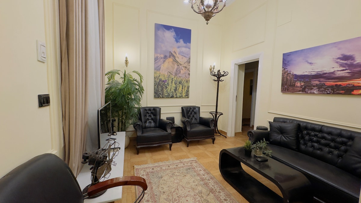 RECENTLY RENOVATED! A well-furnished three-room vast apartment with a triple spacious living room - in the heart of downtown! It's for business trips, couples, or families. It's infant-friendly and suitable for families with many children. In a great, central location in downtown Cairo, a very safe secured area, next to the Parliament, makes it super safe, where you can go out and walk around 24 hours. It's a few steps from a big market, supermarkets, and cafés / restaurants.