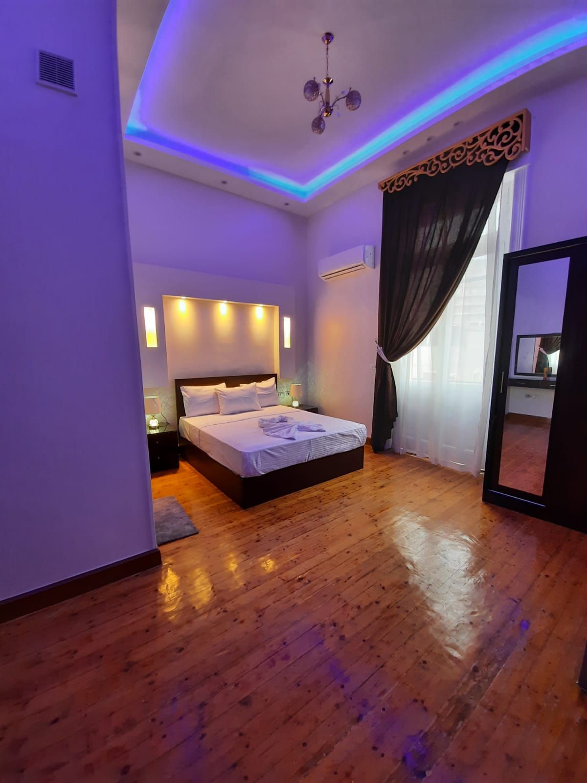 Spacious and well-appointed apartment located in downtown Cairo. The apartment is equipped with all the necessary amenities to ensure a convenient and enjoyable stay, including a fully furnished kitchen, comfortable bedding, and modern bathroom facilities. Guests will have access to the building's rooftop area, which includes a coffee bar, smoking area, and other shared spaces. The apartment's prime location within easy reach of the main attractions, dining options, and shopping districts.