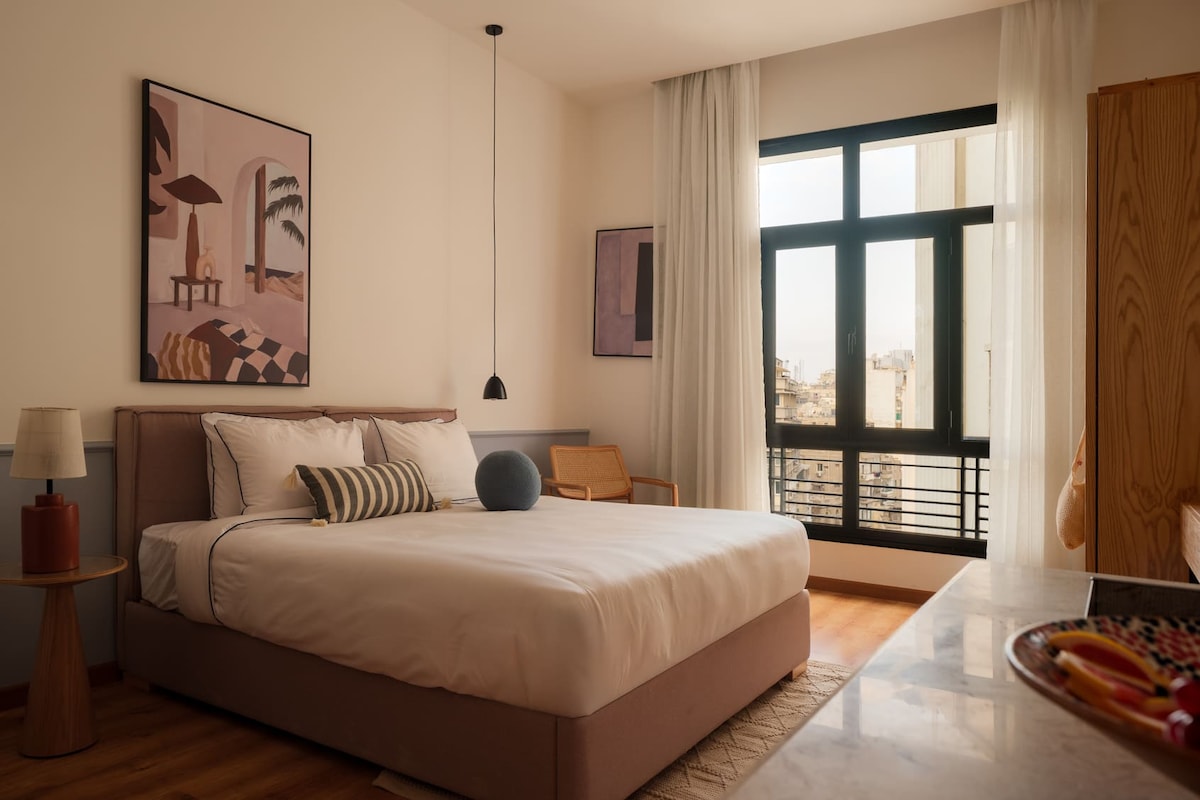 Experience Cairo from this stylish Kasr El Nile studio, perfectly located downtown, minutes from Tahrir Square, the Nile, and more. This modern space features a king-size bed, Wi-Fi, Smart TV, balcony, and a fully equipped kitchenette. Enjoy a peaceful stay with easy access to restaurants, cafes, and transport. Whether you're visiting for work or leisure, this cozy studio offers comfort, convenience, and a true taste of Cairo.