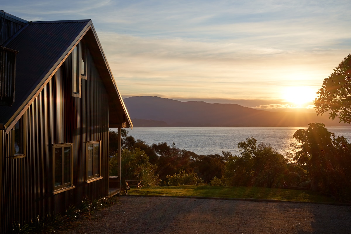 Directly bordering The ABEL TASMAN NATIONAL PARK offering EPIC VIEWS of ENDLESS SKIES, EVER CHANGING SEASCAPES , GREEN FORESTED MOUNTAIN, all within a RARE TOTAL PRIVACY. Soak up the unforgettable views of Abel tasman, Golden Bay, Farewell Spit and beyond from a cosy earth building remotely nestled on the heights of Wainui Bay. COSY and ROMANTIC, it is the perfect ESCAPE to UNWIND for NATURE SEEKERS and STAR GAZERS wanting a different experience.