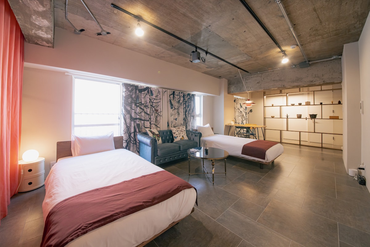日本橋駅8分|心齋橋·道頓堀徒歩10分|電梯·投影機|獨立雙人房